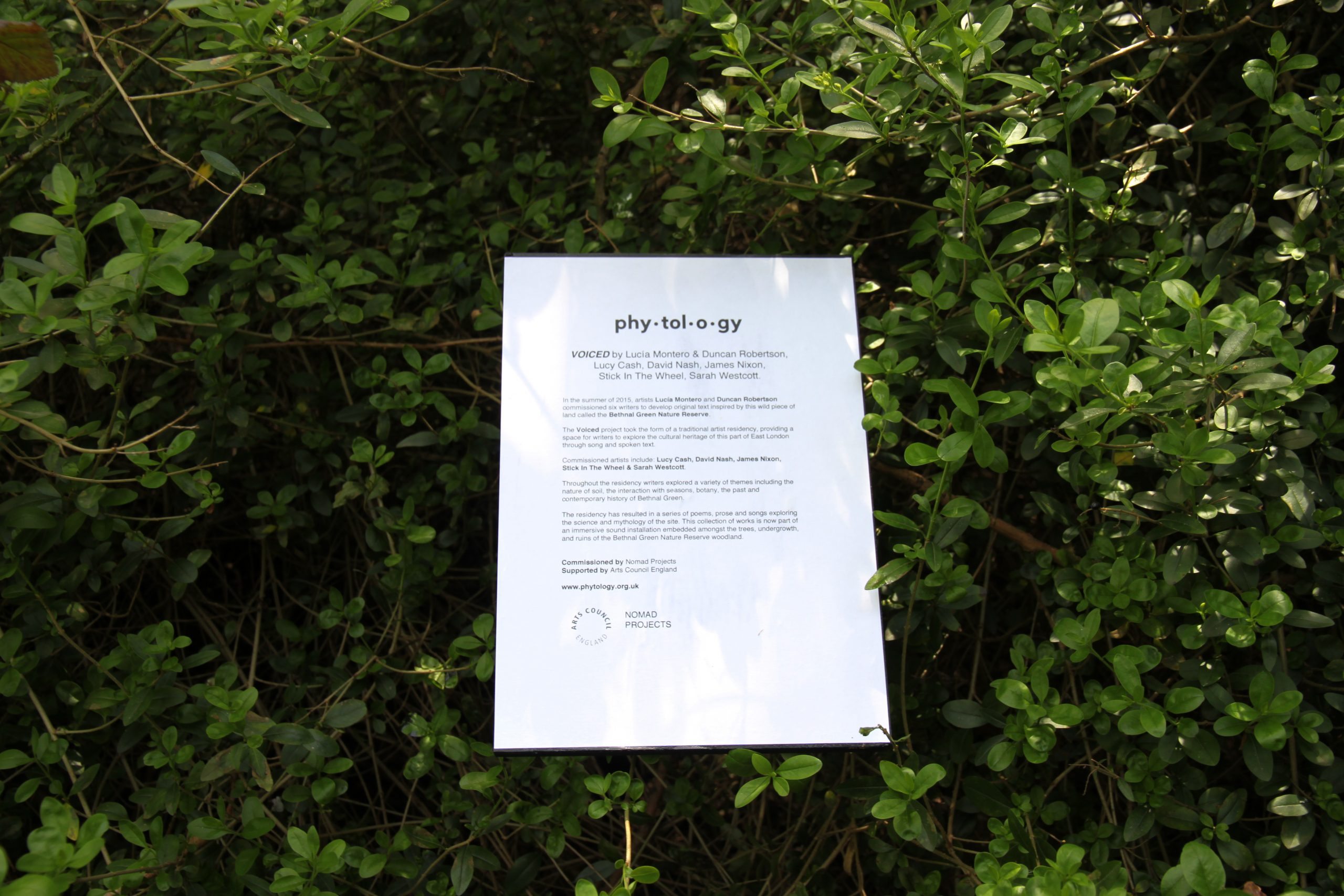 En el verano de 2015 comisionaron a seis escritorxs para desarrollar textos originales inspirados en Bethnal Green Nature Reserve (Londres).